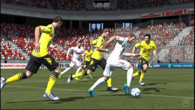 Si le gameplay reprend l'essentiel des deux derniers épisodes HD (FIFA 11 et FIFA